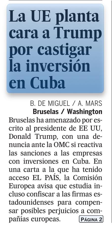 - La reacción es lógica, pero por un lado y por el otro se está entrando en una senda que lleva a la parálisis comercial y a la guerra económica. Esto también es la Tercera Fase. (El País 17.04.2019). #Elcrastercerafase